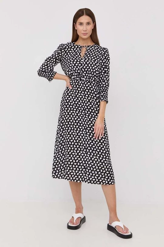 Ελαφρύ φόρεμα από τη συλλογή BOSS. Ανοιχτό μοντέλο από από ύφασμα με σχέδια.