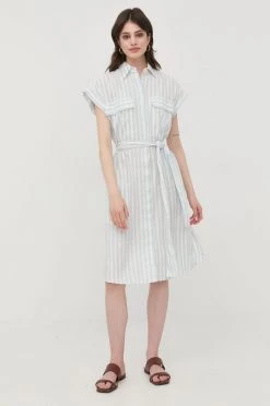 Ελαφρύ φόρεμα από τη συλλογή BOSS. Ίσιο μοντέλο από από ύφασμα με σχέδια. Ελαφρύ ύφασμα, σχεδιασμένο για πιο ζεστές εποχές.