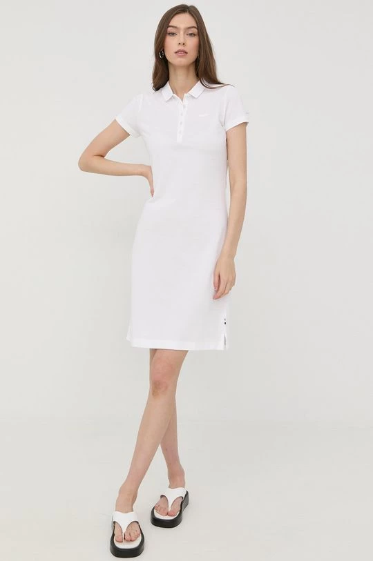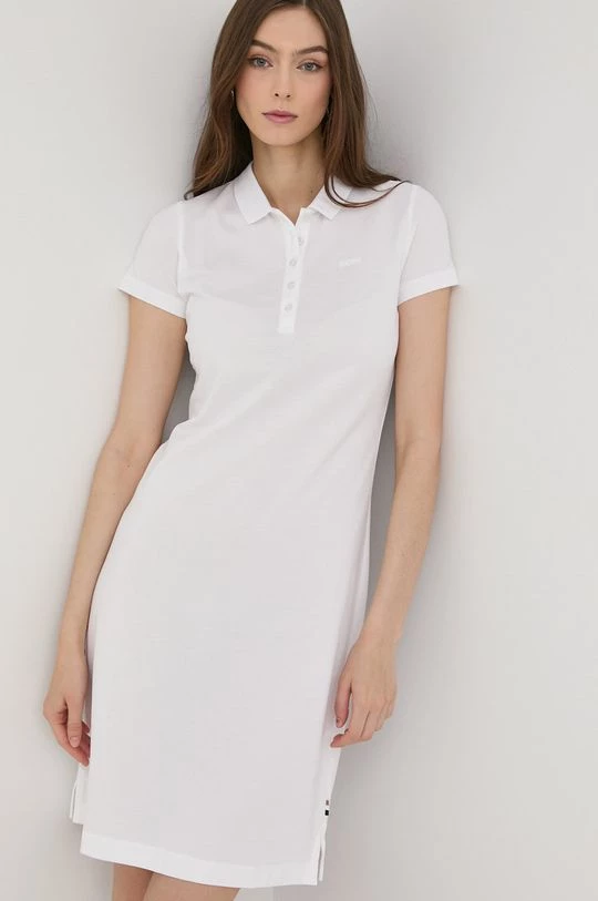 Ελαφρύ φόρεμα από τη συλλογή BOSS. Ίσιο μοντέλο από από λείο πλεκτό.
