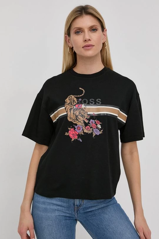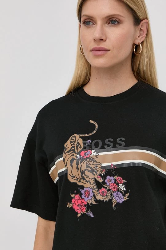 Χαλαρό μπλουζάκι από τη συλλογή Boss. Μοντέλο από λεπτό, ελαστικό πλεκτό.